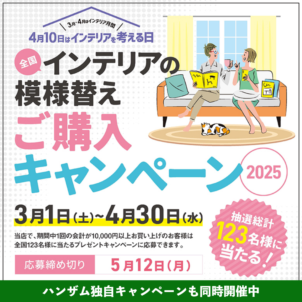 カーテンの試し吊りは、「無料」、「1度に10本まで」、「期間は1週間」、「専用の手提げ袋で当日お持ち帰り可」とご利用しやすくなっております。後悔してからでは遅いです。事前にハンザムにお越しいただき、試し吊りサービスをご利用ください。