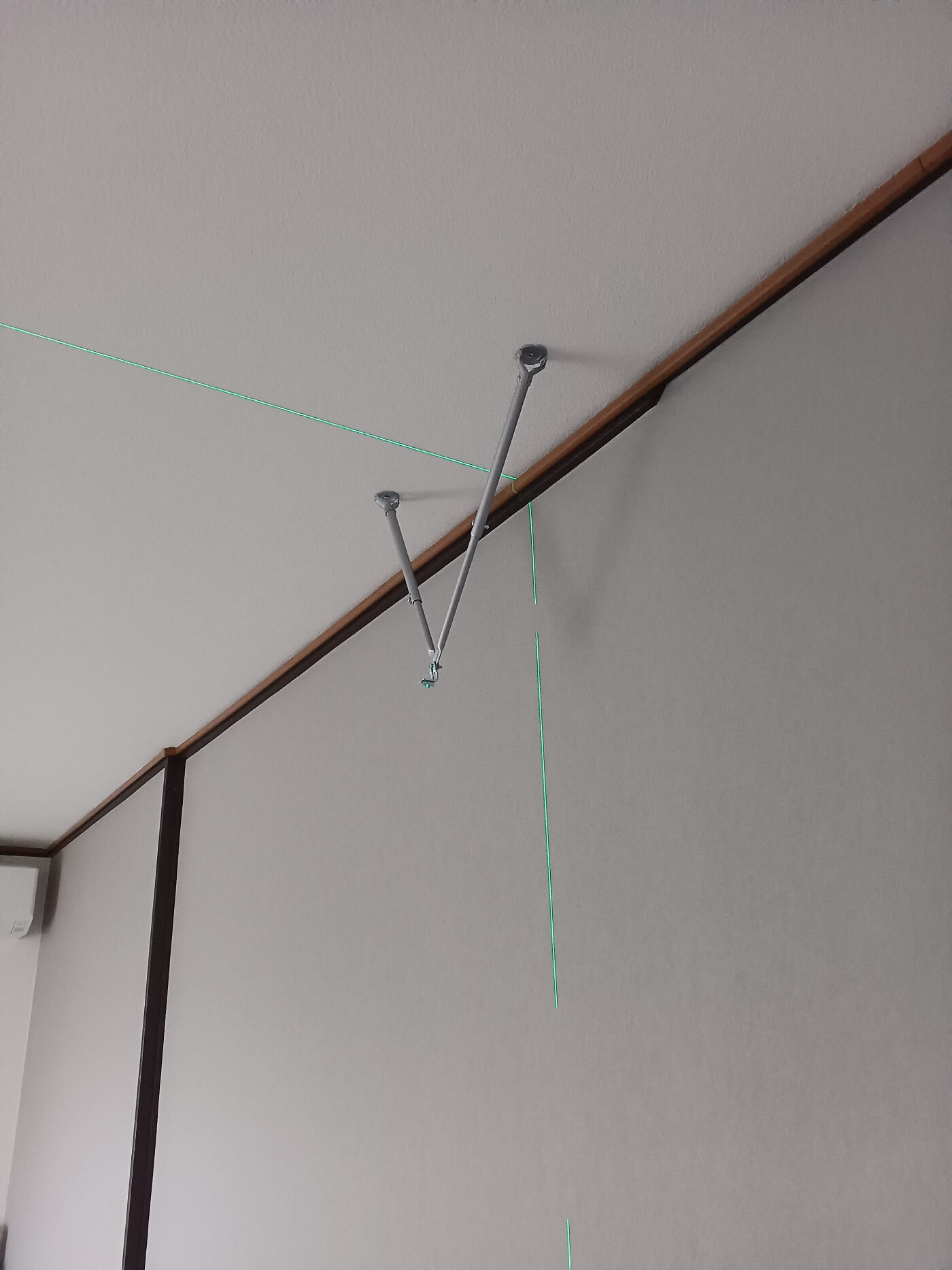 まずは、レールを吊るための吊り棒をレーザーを基準に取り付けていきます。